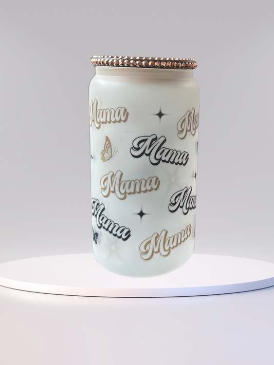 16 oz Glass Cup with Glitter Lid - Mama Glow - Mother's Day Edition (Includes Straw and Cleaner)