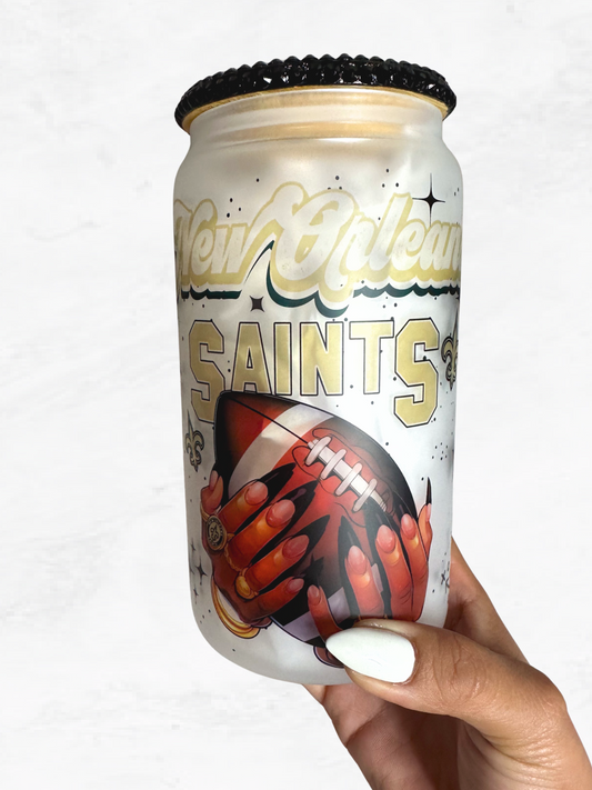 16 oz Glass Cup with Bejeweled Lid - New Orleans (Includes Straw and Cleaner)
