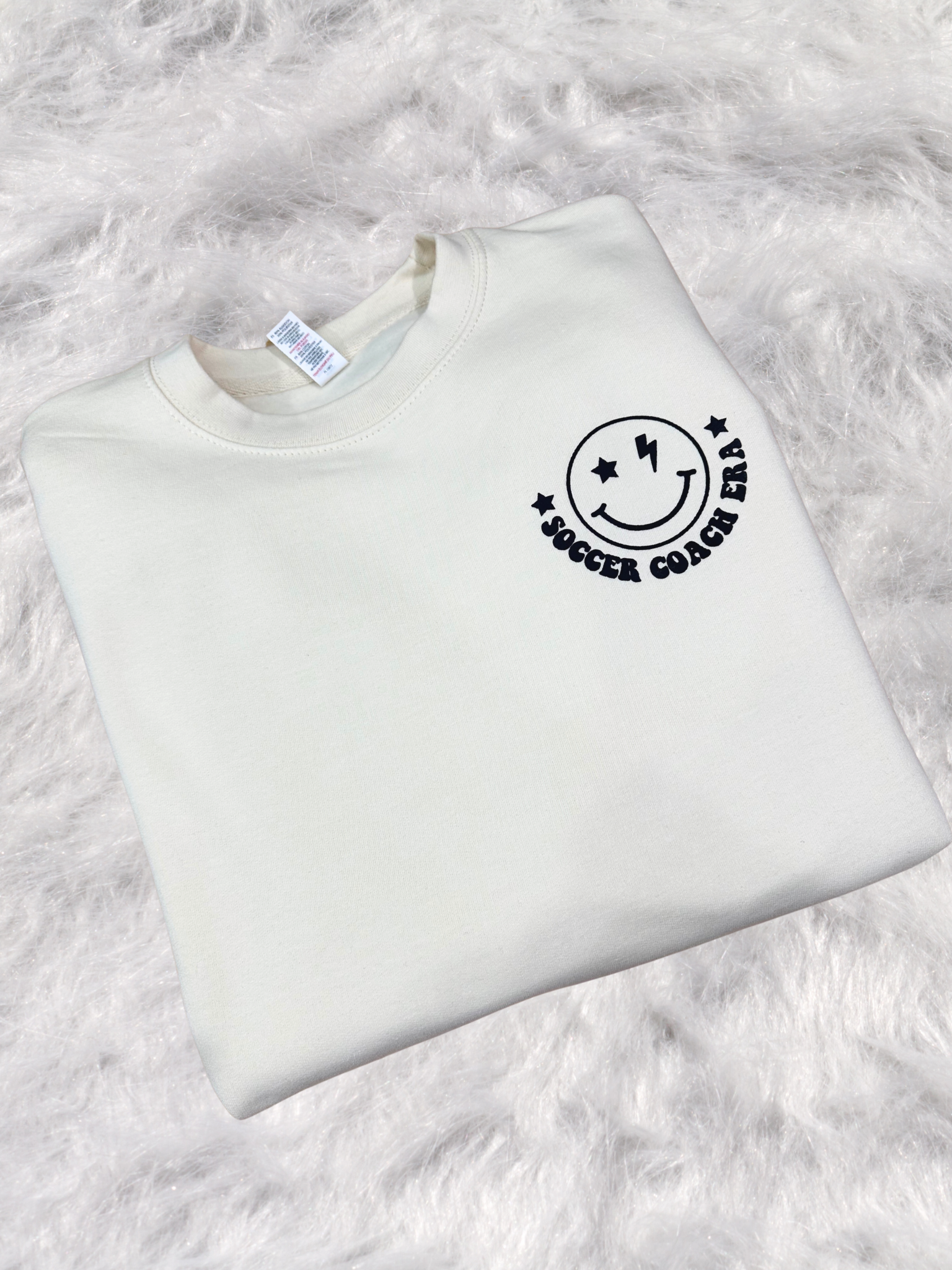 Step into your coaching era in style with our “In My Soccer Coach Era” T-Shirt, designed for soccer coaches who lead with passion—on and off the field. Featuring bold retro-inspired typography with soccer ball details on the back and a clean “Soccer Coach Era” smiley chest graphic on the front, this tee delivers a fun, confident game-day look.